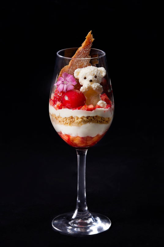 アフタヌーンティーでお馴染みのクマ "Kumachan" がアクセントのシグネチャーパフェ。