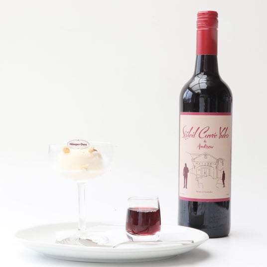 「ハーゲンダッツ バニラ」と、当店で大人気の低アルコール甘口赤ワイン「ソレイユ・キュヴェ・ユウコ(R)&アンドリュー」を組み合わせました。