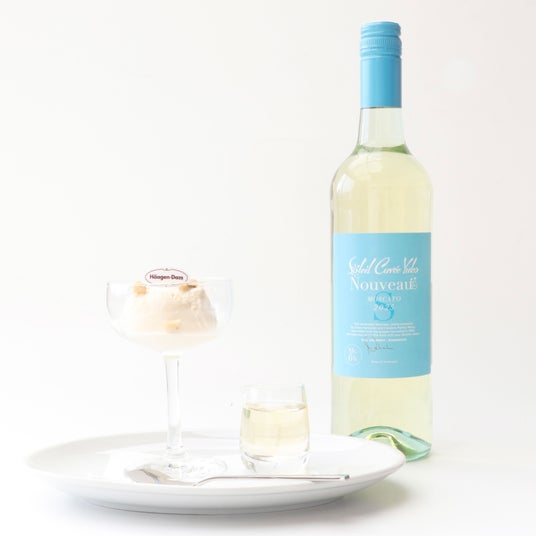 「ハーゲンダッツ バニラ」と、夏限定の微発泡甘口白ワイン「ソレイユ キュヴェ ユーコ モスカート ヌーヴォーS 2025」を組み合わせました。
