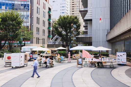 東京芸術劇場前に生まれる広場「ウェルカムぎんが」。ふらりと立ち寄って当日券情報などを入手できる案内所であり、劇場の飲食店と「秋の隕石」とのコラボレーションフード/ドリンクが楽しめる休憩所です。この空間は日々変化していきます。ベンチやテーブルはフレキシブルに組み替えられます。ベビーカー連れなど、どのような方が立ち寄ってもストレスなく過ごせる場所です。DJもやる現代美術家、植物療法士、けん玉プレイヤーなど多種多様なメンバーがウェルカムします。