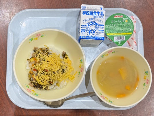 健康レシピコンテスト最優秀賞受賞「キングス丼」が学校給食で提供されました