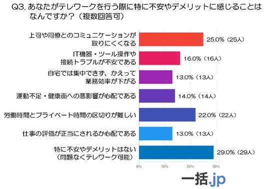 ・ 調査3:テレワークに感じる不安やデメリットは?