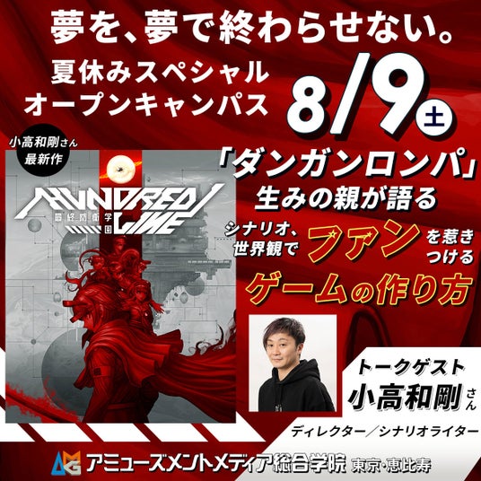 『ダンガンロンパ』シリーズを手掛ける小高和剛さんによる「シナリオや世界観で魅せる」ゲームの作り方【 8/9(土)】夏休みスペシャルオープンキャンパスでトークイベント開催!
