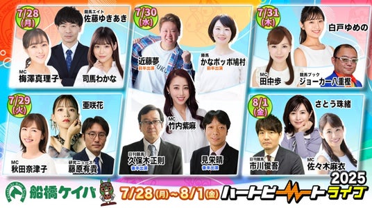 船橋ケイバでは、令和7年度第5回開催を7月28日(月)~8月1日(金)に開催いたします。