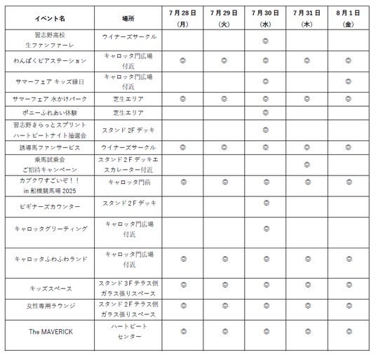 さらに、人気の「わんぱくビアステーション」や、世界のカブトムシ・クワガタに出会える「カブクワすごいぞ!!」など、家族で楽しめる多彩なコンテンツが盛りだくさん。船橋競馬で夏の夜をお楽しみください!