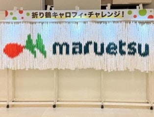 2.マルエツの企業ロゴ「キャロフィ」をモチーフにした折り鶴アートを制作