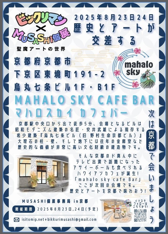 大阪・関西万博で7月9日・10日に開催した『世界のMUSASHI個展』が大盛況を収めたばかりのアーティストMUSASHI(株式会社石富プロパティー所属)。その熱狂も冷めやらぬ間に、株式会社ロッテと株式会社石富プロパティーの共催で全国を巡回中の『ビックリマン×MUSASHI~聖魔アートの世界~』の第二弾が8月23日(土)・24日(日)に京都にて開催される。