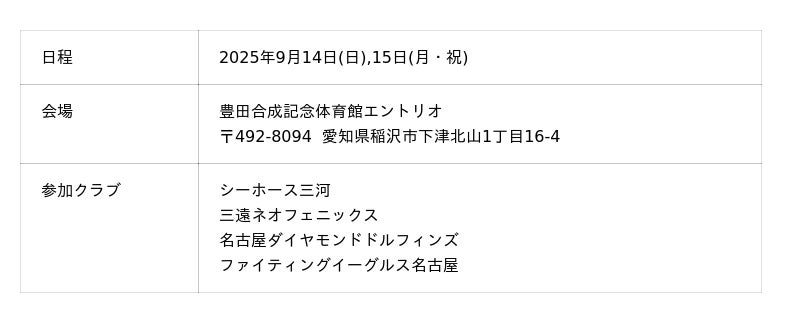 2025年9月14日(日),15日(月・祝) @豊田合成記念体育館エントリオ