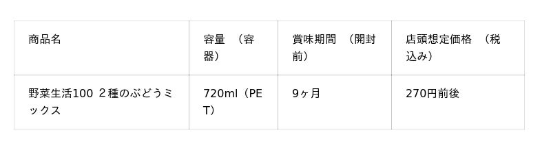 ~季節に合った果実の味わいでご家族の健康をサポート~ 季節限定「野菜生活100 2種のぶどうミックス」新発売