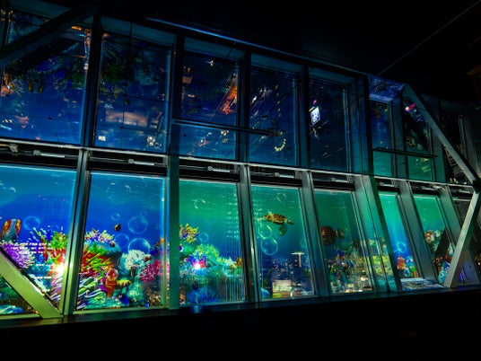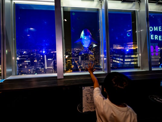 メインのプロジェクションマッピングは、シャチに導かれて旅する海の物語です。リアルな夜景とデジタルアートが交錯する、幻想的な空間演出が体験できます。ストーリーの中心に登場するシャチは、名古屋との深い縁を感じさせる存在です。名古屋城の金の「シャチホコ」や、地元サッカーチームのキャラクターなど、この街の文化やアイデンティティに深く根づいているシャチをフィーチャーしました。さらに、展望台北側には、インタラクティブコンテンツ「Bubble Buddies」が初登場。窓の前に立つと、泡の中からイルカ、シャチ、ペン ギン、タツノオトシゴなど、7 種類の海の生きものが現れ、画面を自由に泳ぎ回ります。子どもたちの好奇心をくすぐる、家族での来場にもぴったりな体験をお楽しみください。