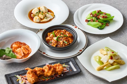 ホテルメトロポリタン(豊島区西池袋1-6-1 総支配人 伊藤 茂夫)の中国料理「桂林」では、主菜のお料理を6種類から2品お選びいただけ、さらにお食事も3種類から1品選べる平日限定"翡翠(ひすい)ランチ"を、2025年8月4日(月)より新しいメニューにてご提供いたします。前菜・点心・スープ・デザートもついた、中国料理の手法を巧みに織り交ぜた「桂林」の味わいをたっぷりと堪能できるおすすめのランチコースです。主菜6種類には四川料理の定番であり奥深い辛さとコクがクセになる桂林の伝統メニュー「麻婆豆腐」や、中国料理の定番食材である"海老"を使った料理の他、その時々の味覚をお楽しみいただける料理をご用意しております。