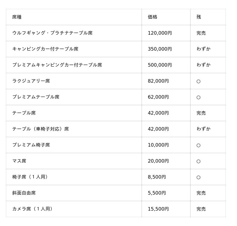 チケット販売状況