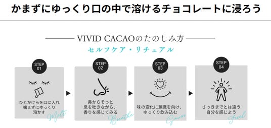 <VIVID CACAO>をかまずにゆっくり口の中で溶かしましょう。心も自然とほぐれていきます。