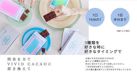 また間食をしてしまった…そんな罪悪感にとらわれることなく、間食を「自分にいいこと」をしている時間にしてほしい、VIVID CACAOにはそんな思いを込めました。ついつい甘いものを食べてしまう方、サプリメントは気になるけれど、なかなか習慣づかない方、気軽に生活習慣を見直したい方にぜひ『VIVID CHALLANGE』に挑戦していただきたいです!