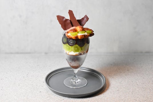 祖師ヶ谷大蔵店のシェフ・奥野は、元パン職人としての経歴を持ち、同店ではチョコレートパン「Minimal "The Day"」やパン・オ・ショコラなど、さまざまなパンもご用意しています。今回のパフェにもその経験を活かし、クロワッサンを大胆に取り入れました。