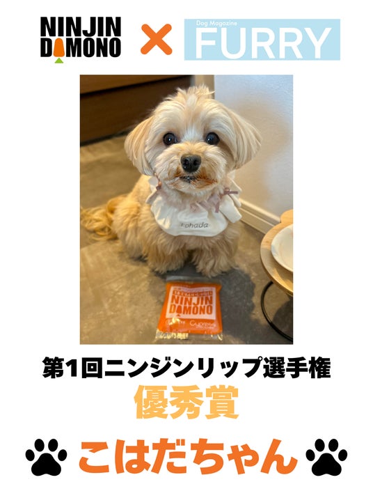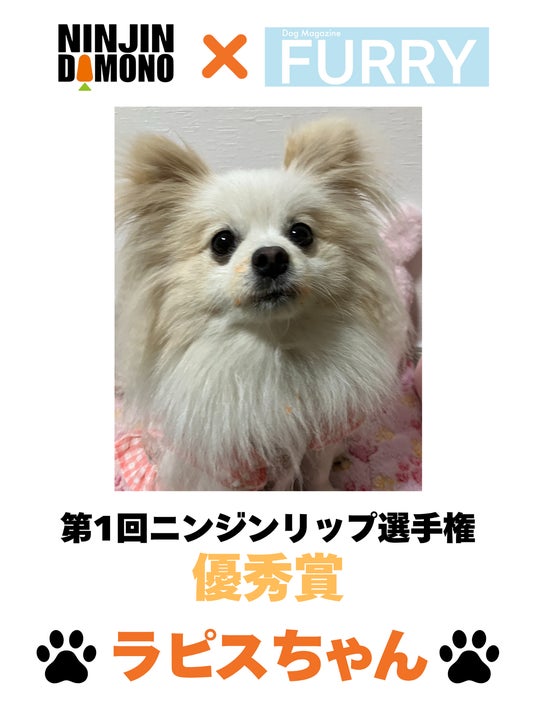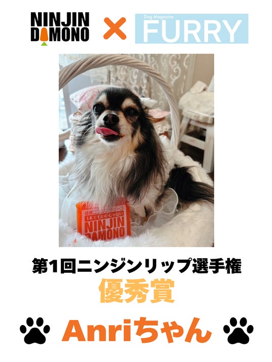 今年3月末のプレスリリースで告知した、愛犬用雑誌『FURRY』と【 NINJIN DAMONO 】によるコラボ企画「ニンジンリップ選手権」のグランプリがついに発表されました。