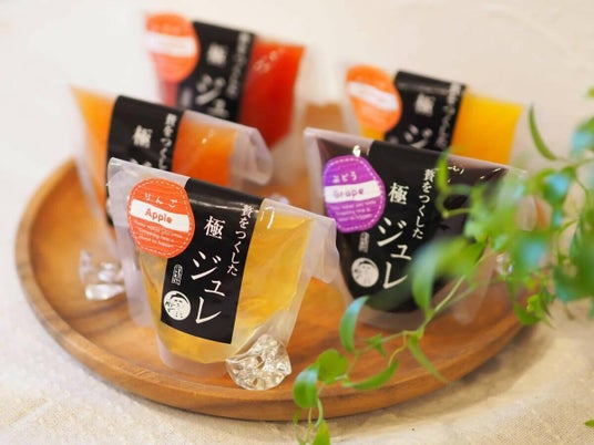 まるで本物の果実を頬張ったようなジューシーさが特徴の「極ジュレ」。オレンジ、アップル、グレープ、ピンクグレープ、グレープフルーツ、マスカット、トマトの7種類の豊かな味わいを詰め合わせました。