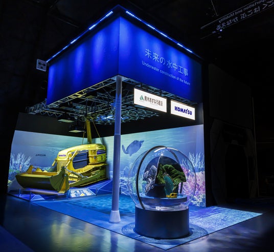 青木あすなろ建設株式会社(代表取締役社長:望月 尚幸)は、2025年日本国際博覧会(以下、大阪・関西万博)の「未来の都市」パビリオンに、コマツと共同で水中施工ロボットが活躍する「未来の水中工事」を展示しています。