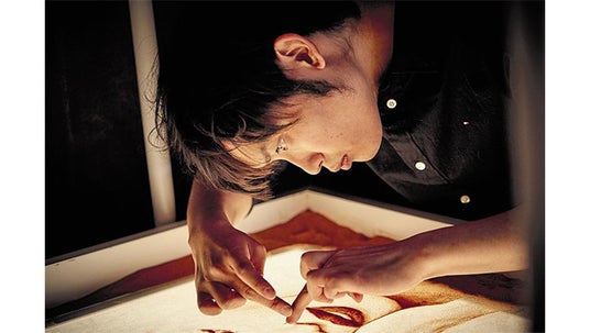 ■サンドアートは、透明なガラスの上に砂で描くライブアートです。指先で砂を操りながら、音楽に合わせて砂絵が次々と変化する様子は、まるで物語が目の前で紡がれていくような感覚を覚えます。この瞬間にしか味わえないアートをぜひ目の前でご体感ください。