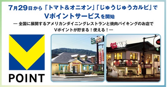 7月29日から「トマト&オニオン」「じゅうじゅうカルビ」でVポイントサービスを開始