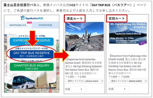 東横イングループの株式会社東横インバス(本社:東京都渋谷区/社長:山本将巳)は、東横INN富士河口湖大橋から富士山吉田ルート五合目登山口(2025年7月1日開山)および東横INN御殿場駅前か ら富士山須走ルート五合目登山口(2025年7月10日開山)までの直行バス「富士山五合目直行バス」を予約運行いたします。