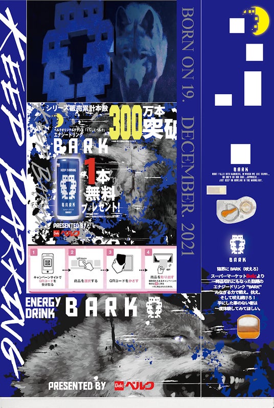 株式会社ベルク(所在地:埼玉県鶴ヶ島市、代表取締役社長 原島一誠、以下ベルク)は、 プライベートブランド『くらしにベルク』(kurabelc)から販売される「BARK」シリーズ(BARK TIPSYを除く)が2025年6月に販売累計本数300万本突破。吠え続ける狼をモチーフにし、夏の暑い時期に冷たいBARKを飲むことで夏の暑さを乗り越えるという願いを込めて2025年8月1日(金)ベルーナドームで開催される「ベルクナイター」とBARKのコラボレーションや無人サンプリング配布、ベルク公式X・Instagramを活用したSNSキャンペーンなどくらしにベルク「BARK」シリーズの認知拡大を目的としたイベントやキャンペーンを開催いたします。