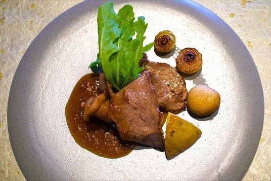 赤身と脂肪のバランスが良く、柔らかい食感が特徴のイチボを、さっぱりとした香味ソースでいただくボリューム満点の一皿。