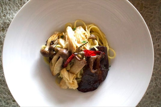キノコの旨味がたっぷり詰まった、香ばしいガーリックとピリッとした唐辛子が絶妙に絡み合う