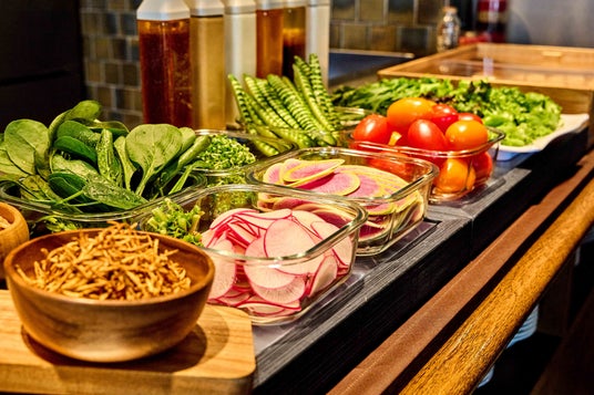 チキンとトマト、香味野菜、オリーブ、松の実を煮込んだ、風味豊かな「チキンのリーグリア風」をはじめ、爽やかな酸味とハーブの風味が特徴のチミチュリソースとジューシーな肉汁が口いっぱいに広がる「ハンバーグステーキ」、赤身と脂肪のバランスが良く、柔らかい食感が特徴のイチボを、さっぱりとした香味ソースでいただくボリューム満点の「イチボのソテー」など、計6種類をご用意。ブッフェコーナーは、サラダをはじめ地産地消の食材を使用した、川崎市産や神奈川県産の地元の味が堪能できるラインナップに。黄身の濃厚な味わいとトリュフの香りが広がる、「川崎市のもりもり卵を使用したキノコトリュフ風味の温度卵」のほか、日替わりでご用意する冷菜、デザートを思う存分お楽しみいただけます。