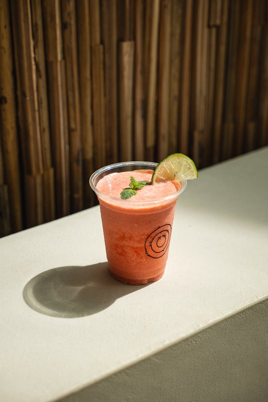 スムージー UAEで夏(5月~8月)によく食べられるすいかと、各家庭に欠かせない定番食材・チャミーチーズを組み合わせた、UAEの伝統的な食べ方をアレンジした一品です。まろやかなチーズのコクと、みずみずしいすいかの甘さが絶妙に重なり合い、さらにミントとライムジュースを加えることで、爽やかな清涼感が口いっぱいに広がります。暑い季節にぴったりの一杯です。