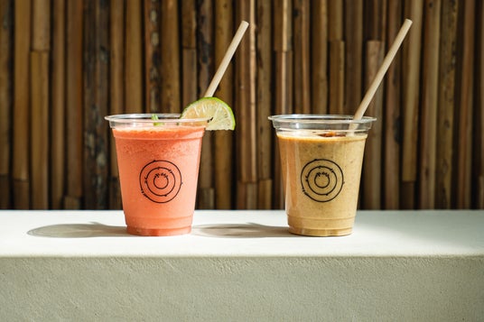 左:すいかとチャミーチーズのスムージー、右:ハルワ&デーツミルクシェイク