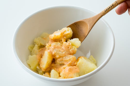 作り方はとても簡単。ゆでてつぶしたじゃがいもに加えるだけで、ご家庭で大人気のポテトサラダが出来上がります。