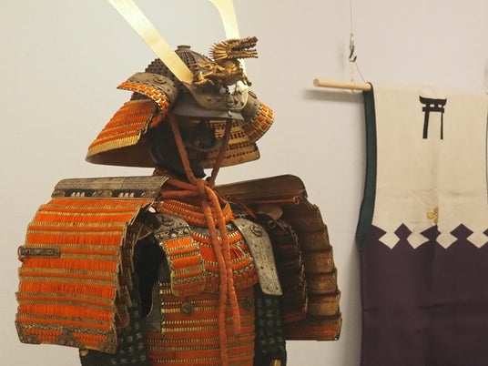 京都工芸繊維大学美術工芸資料館蔵《緋糸縅具足(金龍頭筋兜糸緋縅シ鎧)》