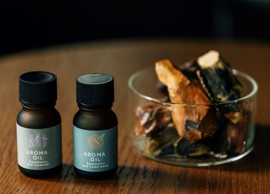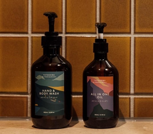 各種アメニティは、蓼科の森を守るために間伐されたカラマツから抽出した精油を使用しています。スチームサウナでは、アロマオイルを使って全身で香りに包まれる体験ができます。シャンプー、トリートメント、ハンド&ボディソープなどのバスアメニティや、オールインワンオイル、ルームミストもすべて、カラマツ由来です。バスアメニティとオイルは館内のショップでもお買い求めいただけます。森の恵みを活かしたプロダクトはギフトにもお勧めです。