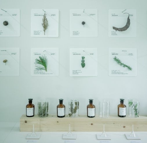あわせて、館内ショップコーナーもリニューアルいたしました。カラマツから抽出した精油のバスアメニティや枝葉を焙煎したカラマツ茶など、地域産の自然素材を活用したオリジナルプロダクトが並びます。