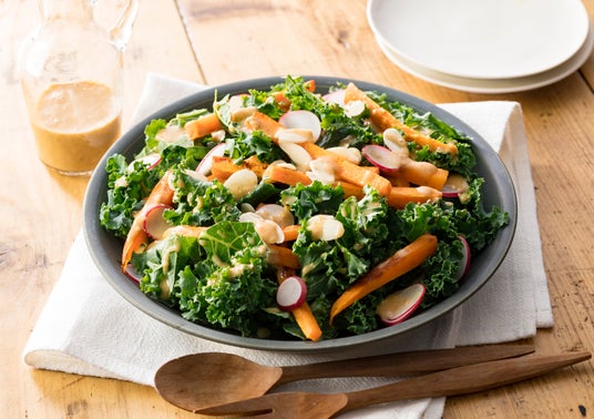メニュー例:焼きにんじんとケールのサラダ(ごまドレッシング使用)