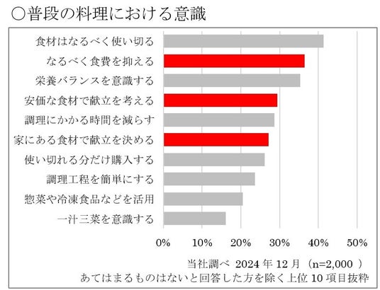 ・節約志向と簡便調理ニーズの拡大お客さまの節約意識が高まるなか、幅広い食材・メニューに使用できる汎用シーズニングは、家にある食材を賢く活用するシーンと親和性が高いアイテムとして、市場拡大の可能性があると推察されます。また、汎用シーズニングに対しては、「かければ何でもおいしくなる」「使い方がわかりやすい」などの簡便性や、使い切りやすい容量が求められています。