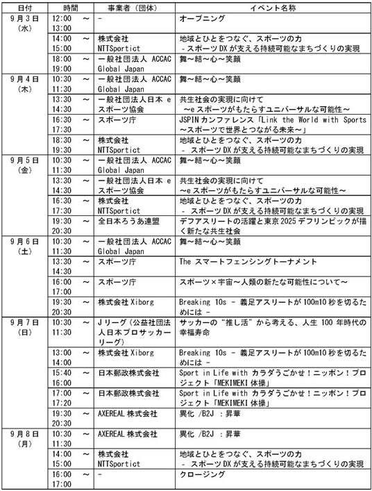 さらに、会期初日の9月3日(水)は、室伏広治長官も出演するオープニングセレモニーを実施しますので、ぜひご参加ください。