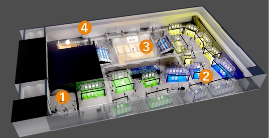 会場は、4つのコーナー(オープニング、Lab(ラボ)、ステージ、シンボルゾーン)からなり、全22の団体・企業が出展します。AIやVR、最新音響映像技術などを駆使した体験型コンテンツを楽しめます。