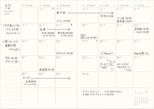 ▲マンスリー・プラン:1年間の大切な予定や月の目標など、自由に記入でき、年間の計画が立てやすくなります。