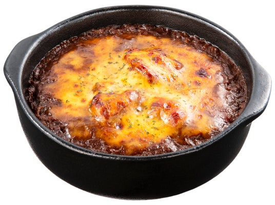 銀座デリー監修のドリア。たっぷりの玉葱を使用したカレーソースに、鶏肉とチーズをのせて焼き上げました。