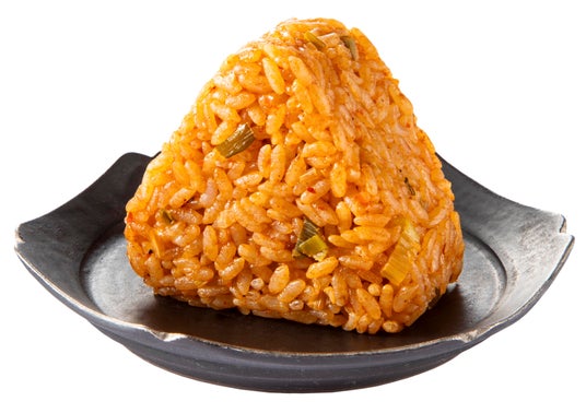 キムチ,玉子,長ねぎを御飯に混ぜ込み、にんにくと黒胡椒を効かせた、旨辛い味わいが楽しめるキムチチャーハンおむすびです。