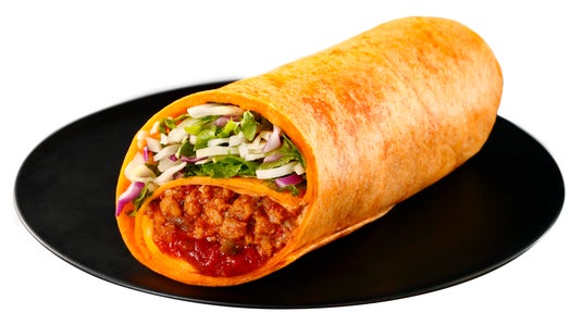 タコスミートとサルサソース、チェダーチーズを野菜とともにトルティーヤで巻きました。