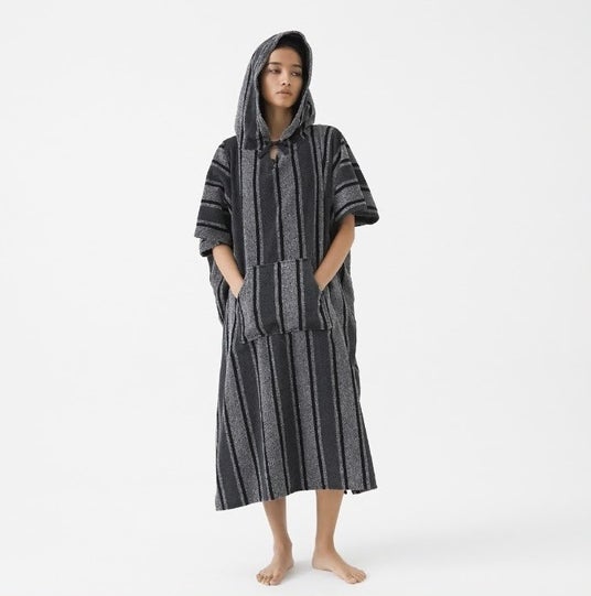 「hoteL_」ポンチョタオル 27,500円 吸水速乾のため、薄手でありながら吸水力が高く、乾きが早いのが特徴。通常タオルの1.5倍の高密度なパイル生地は柔らかく、肌触りが良いだけでなく、耐久性も備えています。海、プールなどでの着替えやサウナの時に活躍。