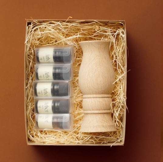 「Arbor」Bulbous wood diffuser × aroma oil 5ml set 8,800円 ウッドディフューザーは廃木材からできており、西洋のアンティーク家具の机や椅子の脚からインスパイアを受け設計。アロマオイルは、5種類の贅沢な香りが楽しめます。