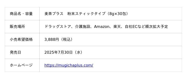 おなかラクト合同会社(本社:東京都渋谷区、代表社員:若井晋平)は、株式会社アースカラー(本社:東京都渋谷区、代表取締役:近藤 寛樹)と共同で、粉末スティックタイプの麦茶として世界で初めて※たんぱく質5gを実現した新商品「麦茶プラス」を開発。2025年7月30日(水)より販売を開始いたしました。本商品は、「水分補給」と「たんぱく質摂取」を両立するという新しい発想のもと誕生しました。甘さがなく、麦茶本来の味わいを保ちながら、しっかりとたんぱく質が摂取できる画期的な商品です。