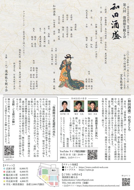 第八回復曲能を観る会「和田酒盛」が2025年11月22日 (土)に宝生能楽堂(東京都文京区本郷1-5-9)にて上演されます。
