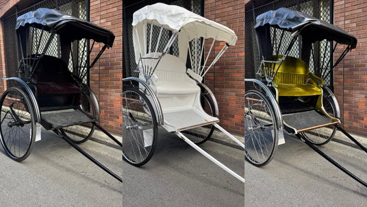 黒、白、緑の人力車のそれぞれのファーストクラスの人力車