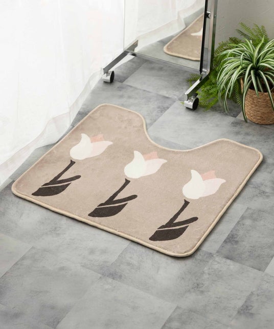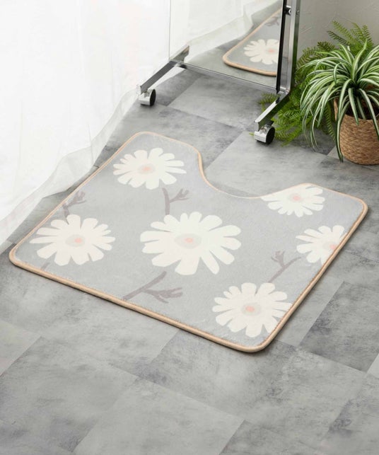 ふんわり優しい色合いと、ナチュラルな北欧風の花柄が魅力のトイレマット。