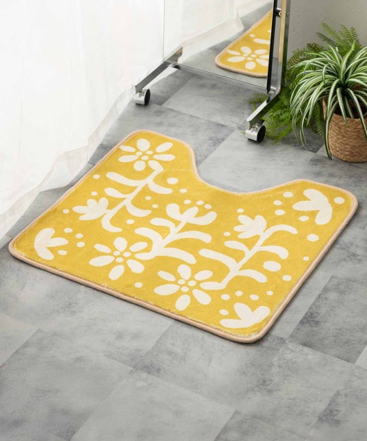 北欧風花柄 もこもこトイレマット 滑り止め付 50x60cm